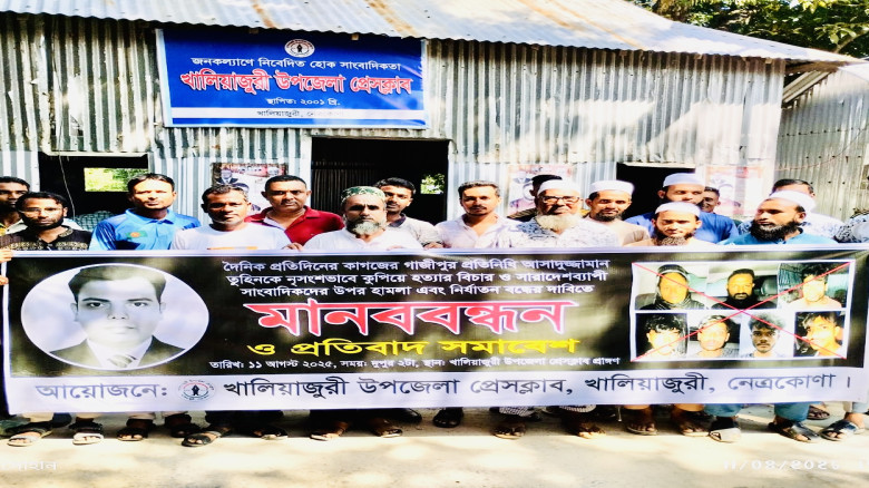 খালিয়াজুরীতে সাংবাদিক তুহিন হত্যার ন্যায়বিচারের দাবিতে মানববন্ধন ও প্রতিবাদ সমাবেশ...